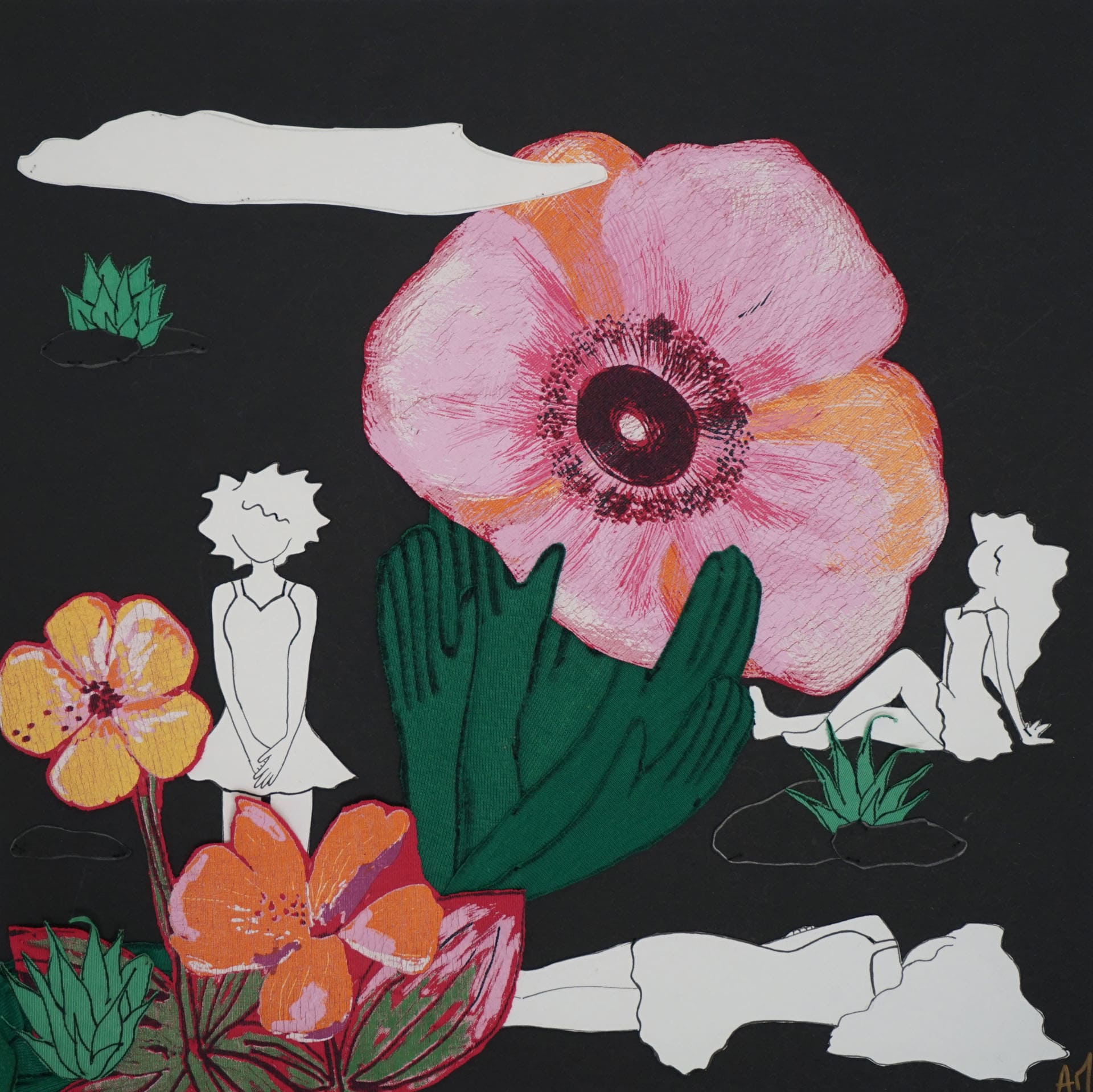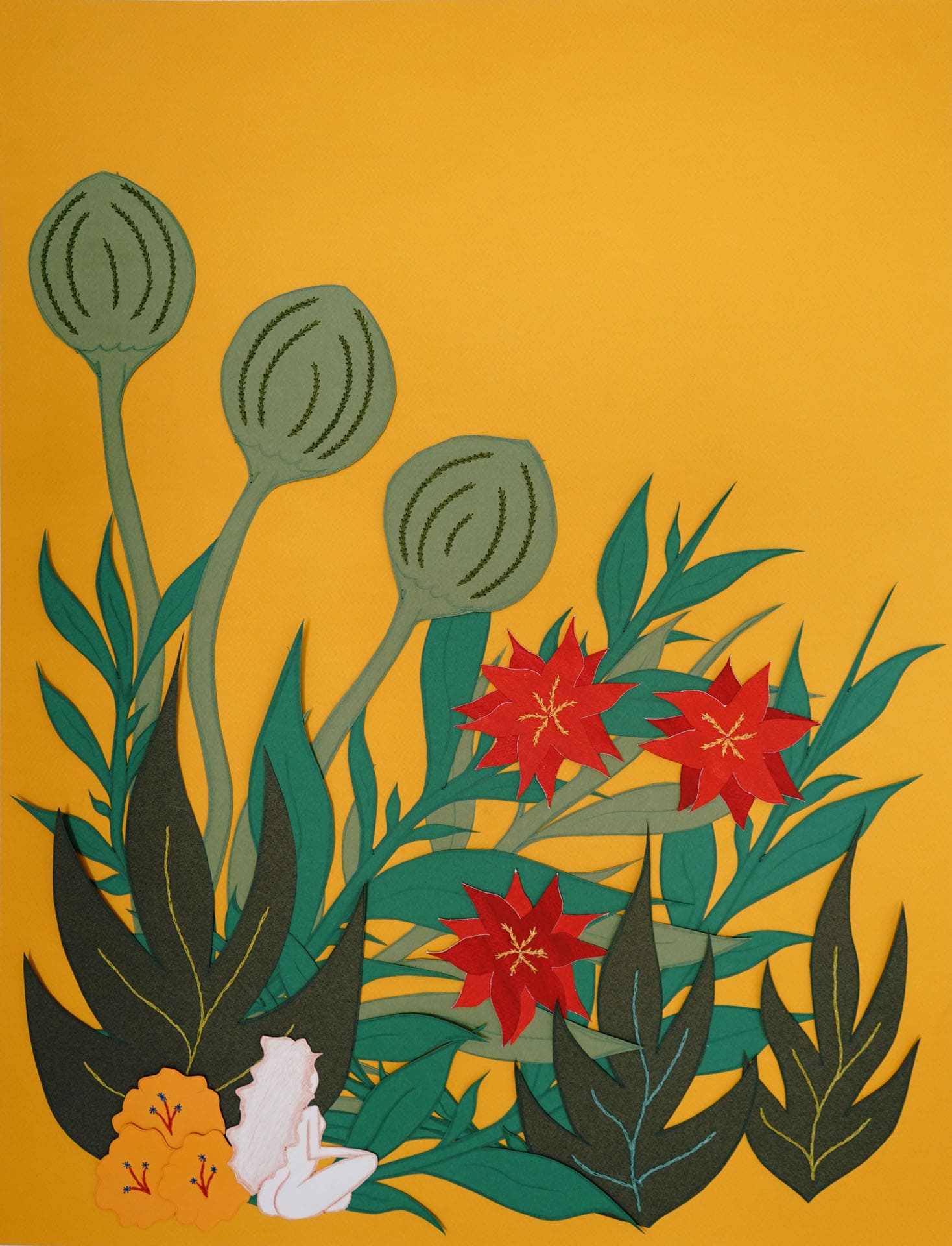 paper, acrylic & embroidery - 19,5''x25,5''